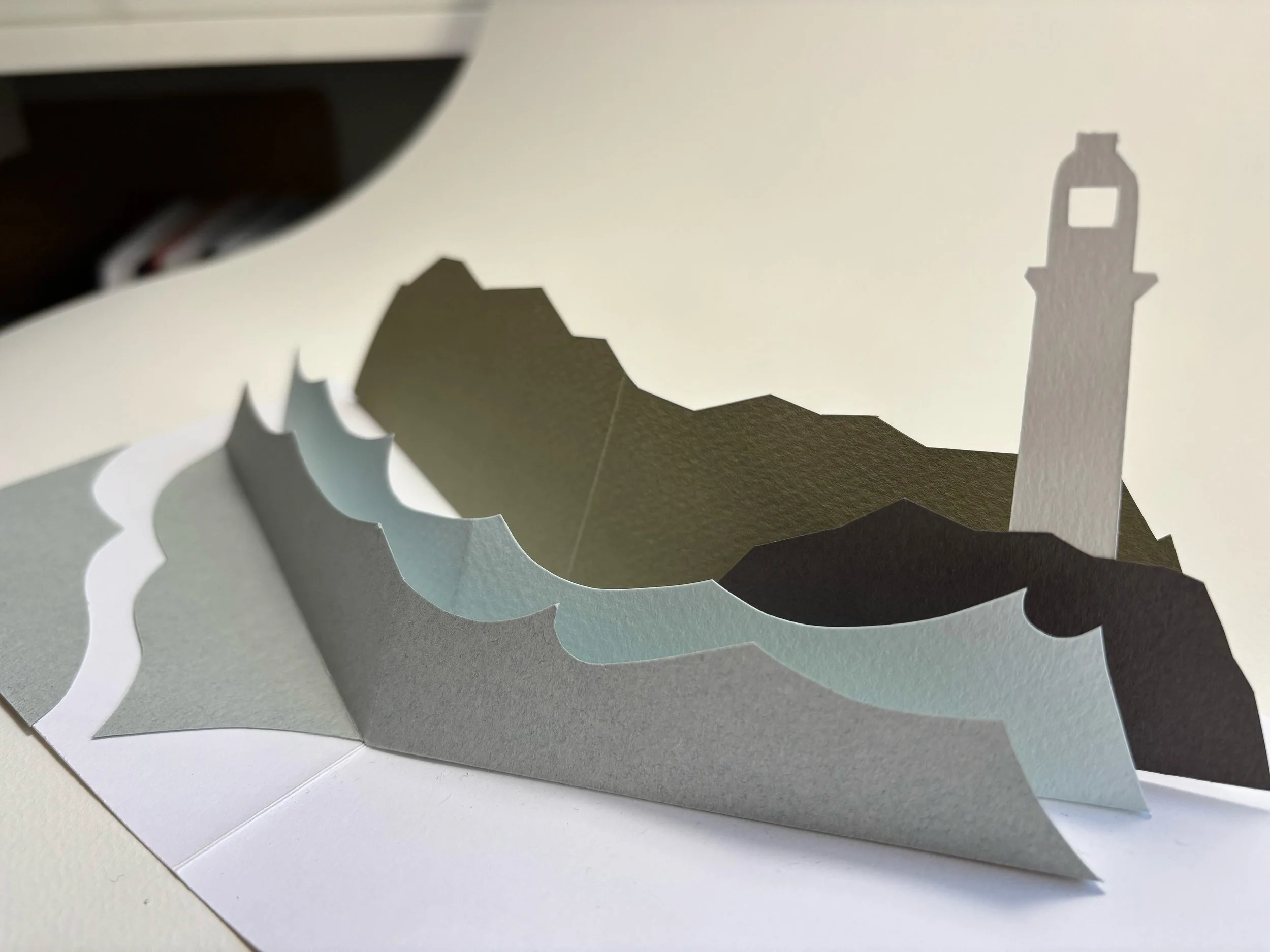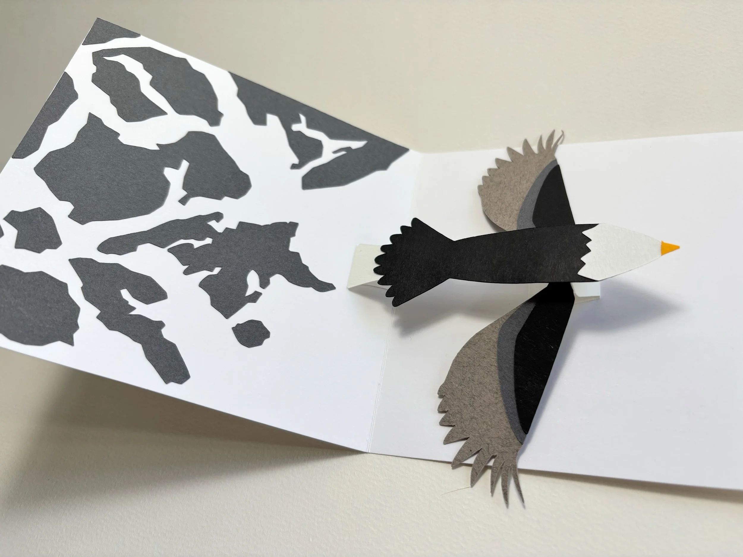 I love to make paper come to life. Pop-ups and paper mechanics are one way I get to do that. This new and growing series of cards is inspired by our coastal BC environment and the creatures, landscapes, and quiet moments found here. All of the these designs measure 4.75 x 4.5 and open to 9.5 x 4.5.
